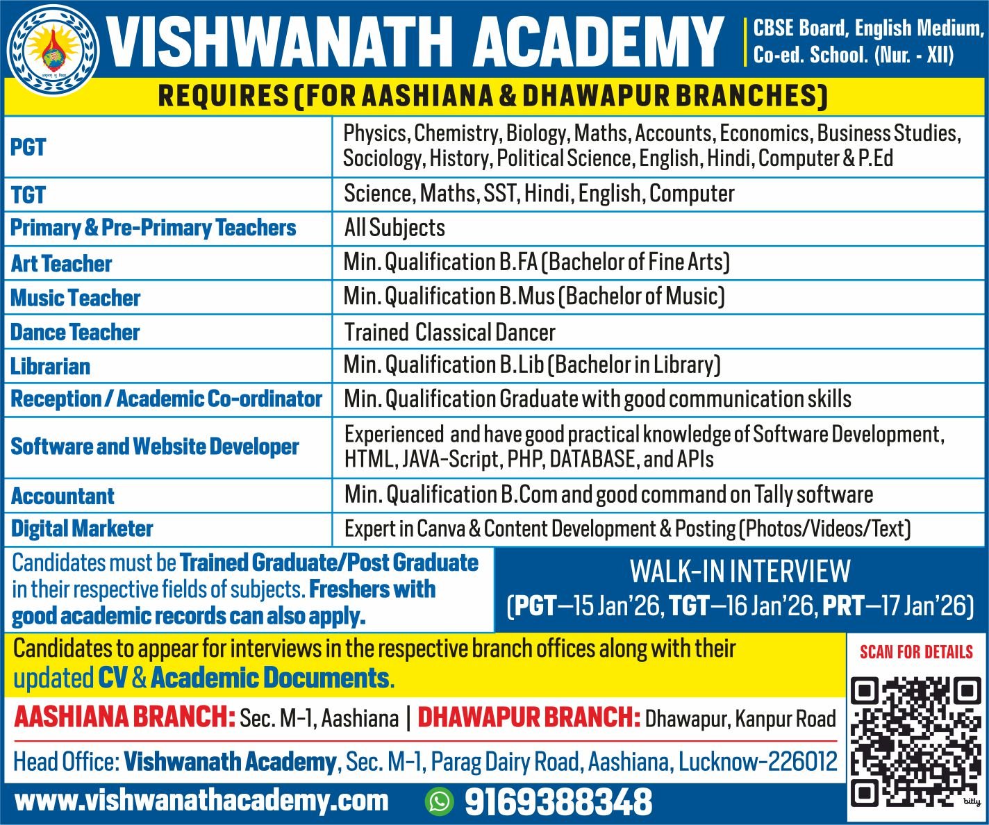 Latest Resume must be submitted in school office (with academic documents and photograph) in both Aashiana and Dhawapur Branch but Interview and demo will be taken in Head Office Only.